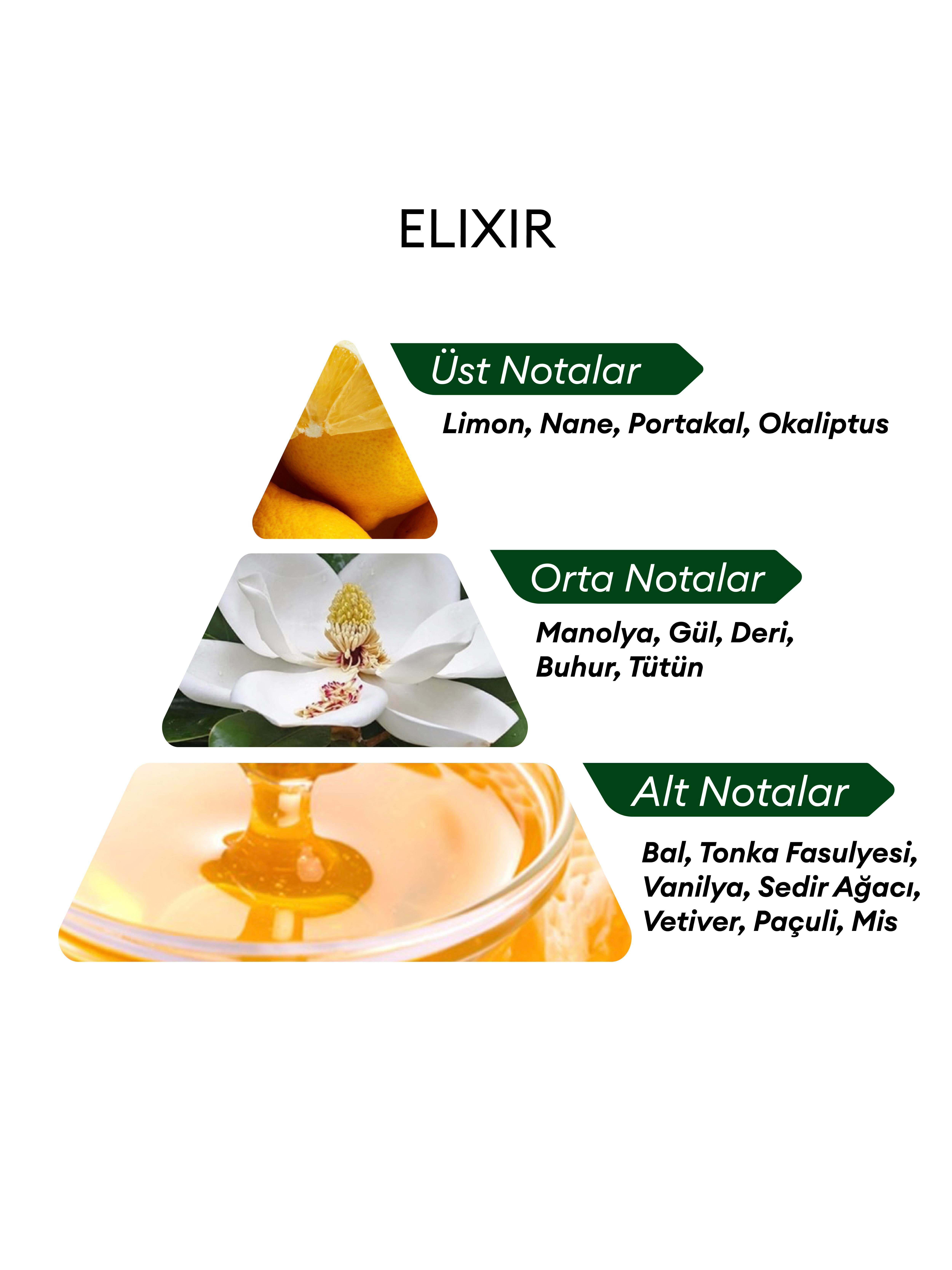 Ürün İçeriği: Üst Notalar: Konyak, Kadife Çiçeği, Nergis, Sardunya, Mandalina, Bergamot, Kişmiş Orta Notalar: Sümbülteber, Yasemin, Menekşe, Ylang-Ylang, Gül, Deri, Tütsü, Portakal Çiçeği, Osmantus Çiçeği, Paçuli Alt Notalar:Tonka Fasulyesi, Amber, Sandal Ağacı, Vanilya, Misk, Vetiver Hacim: 50ml Kullanım Şekli: Temiz tene ve kıyafete istenilen sıklıkta uygulanır. 15-25 cm uzaktan, enseye, omuz başlarına ve saçınıza uygulayabilirsiniz. Göze ve tahriş olmuş deriye temas ettirmeyiniz.