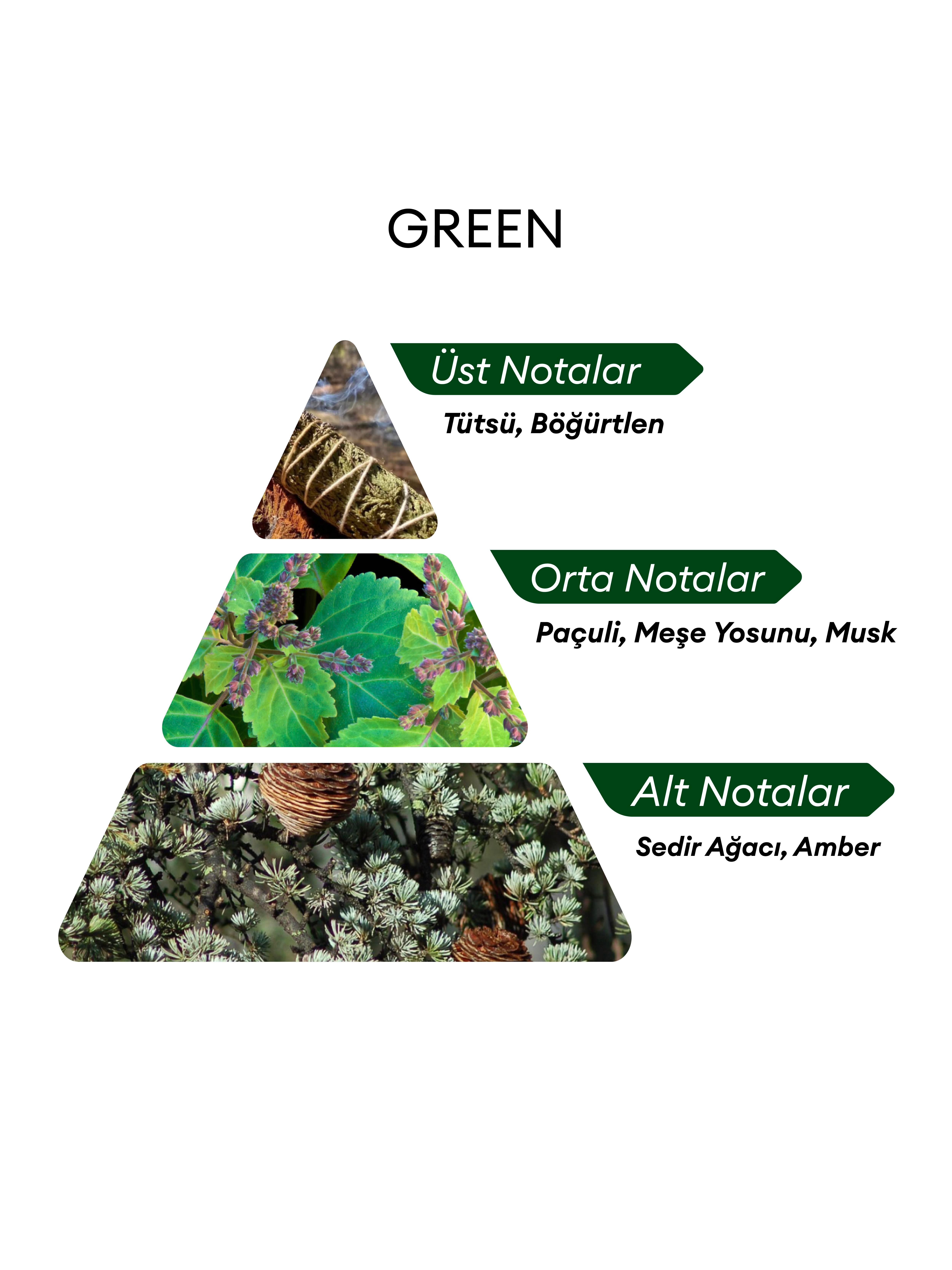 Üst Nota: Tütsü, Böğürtlen Orta Nota: Paçuli, Meşe Yosunu, Musk Alt Nota: Sedir Ağacı, Amber